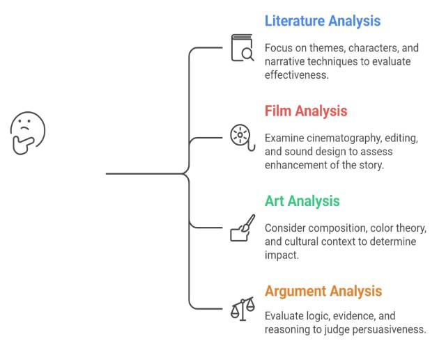 - Film studies (evaluating movies, documentaries)