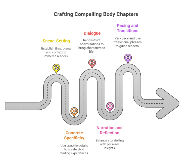 Most successful autobiographies blend these approaches—primarily chronological with thematic elements within chapters. For example, a chronological autobiography might devote one chapter to ages 10-18 but organize that chapter thematically around school, family, and early romance rather than year-by-year chronology.