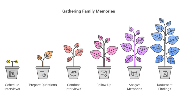 Your family members remember events you've forgotten or never knew about. They provide different perspectives on shared experiences and can confirm or correct your memories. Schedule dedicated interview time with parents, siblings, grandparents, aunts, uncles, and long-time family friends.