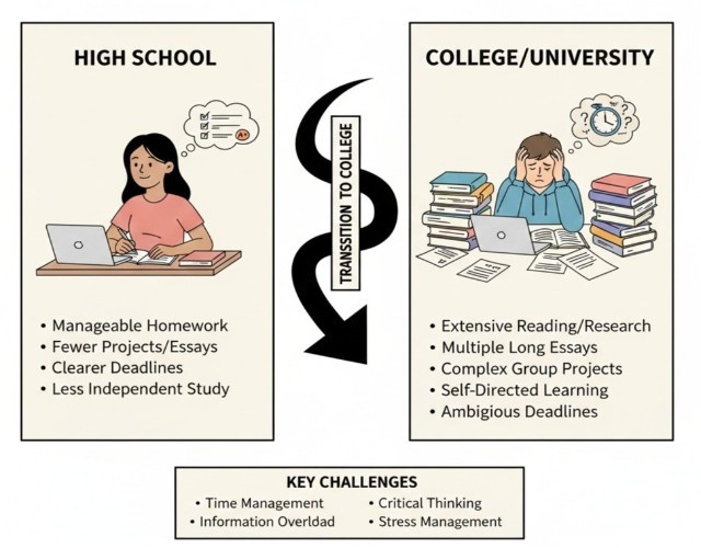 Nobody checks if you attend class, complete assignments on time, or maintain healthy habits. Consequences for poor choices take weeks or months to materialize, unlike high school's immediate feedback. Studies indicate that 50 to 60% of first-year students struggle with procrastination that they didn't experience in high school, due to reduced external accountability.