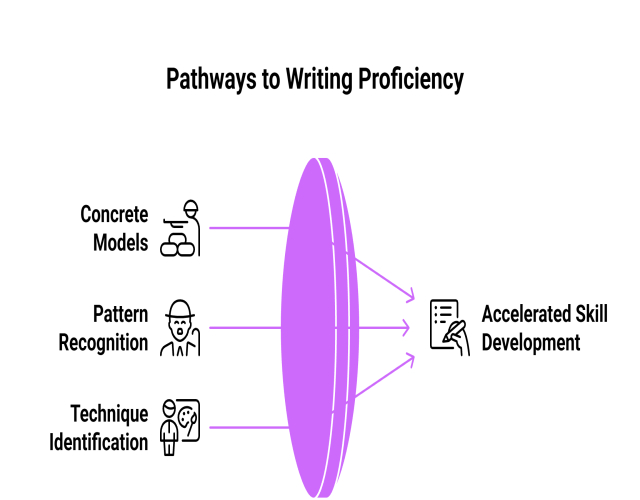 Human brains learn through pattern recognition—observing successful models and replicating structures. After studying 3-5 strong examples, patterns emerge: introductions that hook readers while establishing thesis, plot summaries organized chronologically with focus on major events, character analysis explaining motivations and development rather than just describing, theme discussions with specific textual evidence, and conclusions synthesizing insights rather than merely restating.