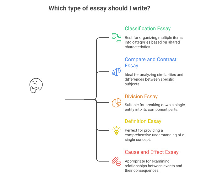 Understanding the difference between classification and division essays? Our classification and division essay guide breaks down both writing techniques and shows you how to apply them effectively. This resource explains how classification groups items into categories based on shared characteristics, while division separates a single subject into distinct parts—helping you choose the right approach for your assignment and execute it with clarity and precision.