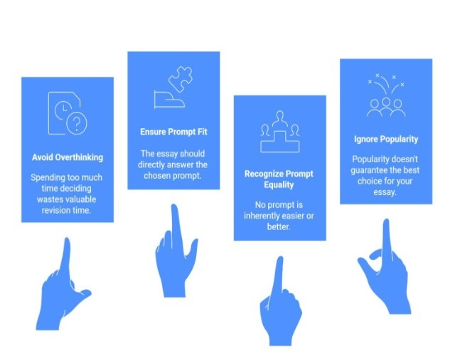 Remember that prompt choice matters far less than essay quality. Focus on authenticity, specific details, meaningful reflection, and tight focus rather than agonizing over which of the seven prompts to answer. The strongest essays would be compelling regardless of which prompt they technically respond to.