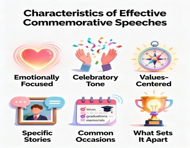 Commemorative speeches honor what matters by making your audience feel deeply. Start with a specific focus, use concrete stories over generic praise, and let authentic emotion guide your delivery.