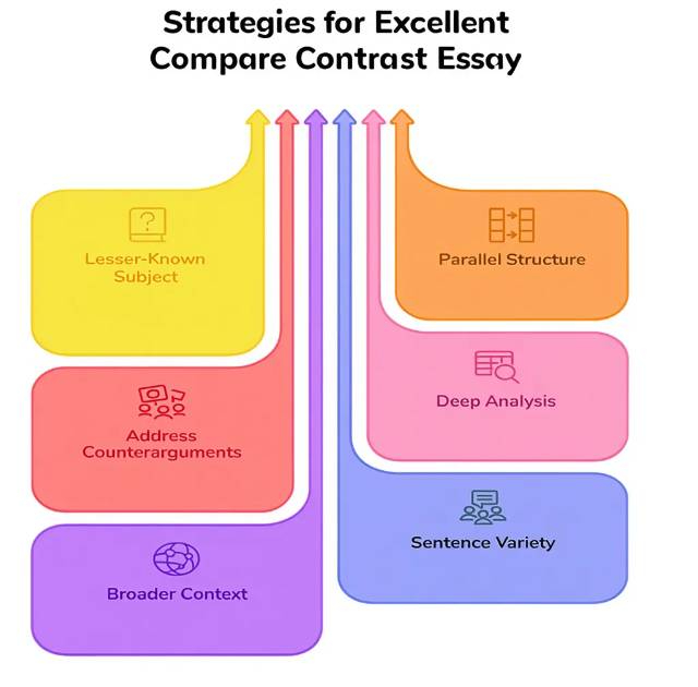 10. Read Examples in Your Subject Area: Study successful essays in your specific discipline. Literary comparisons differ from scientific comparisons; learn conventions for your field.