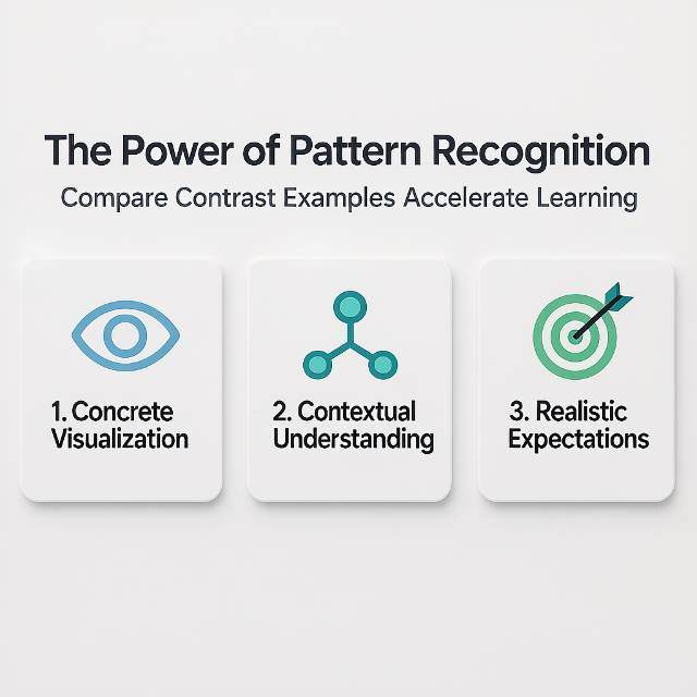 The Power of Pattern Recognition: Human brains learn effectively through pattern recognition, observing successful models, and replicating their structures. Examples provide three learning advantages that abstract instruction alone cannot: