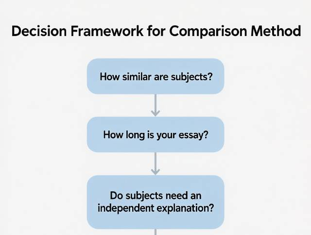 Best for: Shorter essays (500-750 words), subjects needing full context before comparison, and fewer comparison points