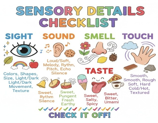 | Structure note: Organize by sense type, visual first, then tactile, then deeper meaning. |