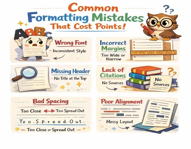 Formatting mistakes make professors question your attention to detail, even when your content is excellent. Missing page numbers, wrong margins, or inconsistent spacing suggest carelessness that costs points.