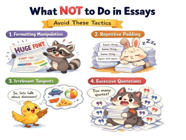 Avoid formatting manipulation. Instructors recognize these tactics immediately, and they undermine your credibility. Instead, focus on strengthening your arguments and analysis, when the writing improves, the word count follows naturally.