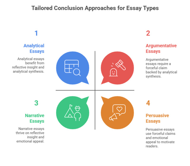 Different essay types benefit from tailored conclusion approaches.