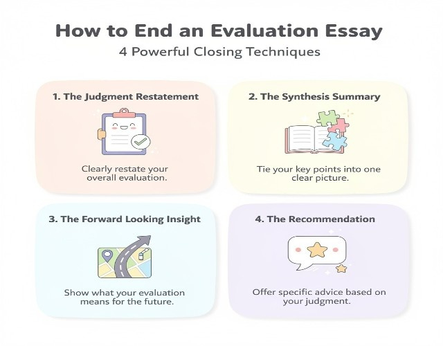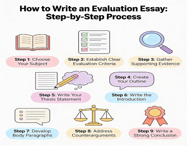 The key to strong evaluation essays is clear criteria, solid evidence, and balanced analysis. Pick a subject you can thoroughly assess, establish measurable standards, gather supporting facts, and present your judgment fairly.