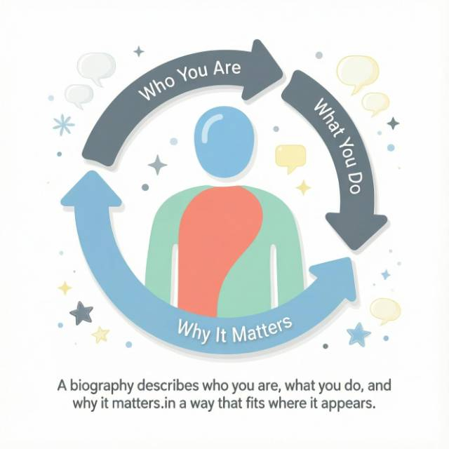 A bio (short for biography) is a brief summary of your professional identity, accomplishments, and relevant personal details written in narrative form, usually in third person for professional or public contexts.