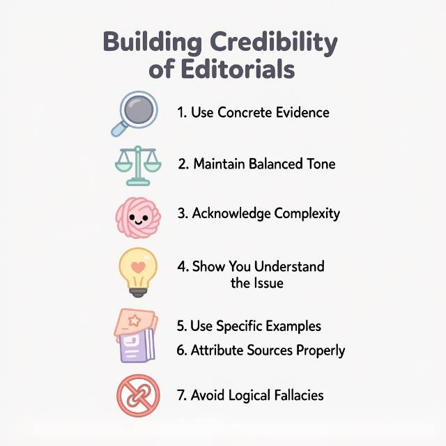 Strong editorials rely on facts, statistics, expert opinions, and real examples not just personal opinion.Structure your argument logically.