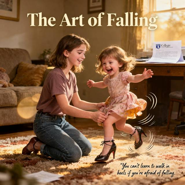 I don't believe in signs or three year old wisdom, exactly. But I believe in moments that crack open your perspective just enough to let reality in. Maya didn't teach me to "never give up" or any other platitude that would fit on a poster. She taught me something more practical: you can't learn to walk in heels if you're afraid of falling. You can't build a life if you're terrified of the collapse.
