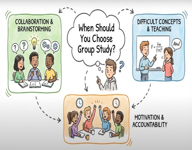 Use groups when you're stuck on concepts that solo study isn't clarifying. Other students approach problems differently and might have insights that unlock your understanding. Their alternative explanations can provide the "aha moment" your solo work missed.