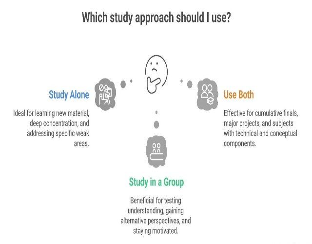Stop defaulting to comfortable patterns that don't serve your learning needs. Study alone when deep focus, personalized pacing, or honest self-assessment matters. Studying in groups when testing understanding, gaining perspectives, or maintaining motivation provides value. This strategic flexibility transforms both approaches from habits into tools you deploy intentionally.