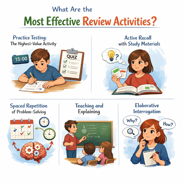 The review activities you choose determine whether your time produces results or wastes effort. Focus on high value activities that build retrieval strength.