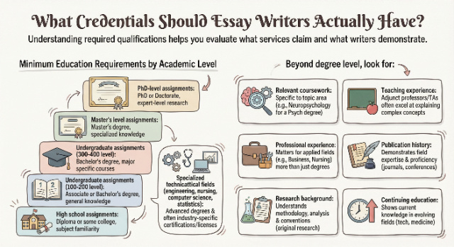 Understanding required qualifications helps you evaluate what services claim and what writers demonstrate.