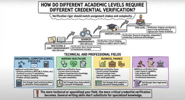 Why this matters: Prevents credential fraud, identity theft, and diploma mill degrees from entering the writer pool.