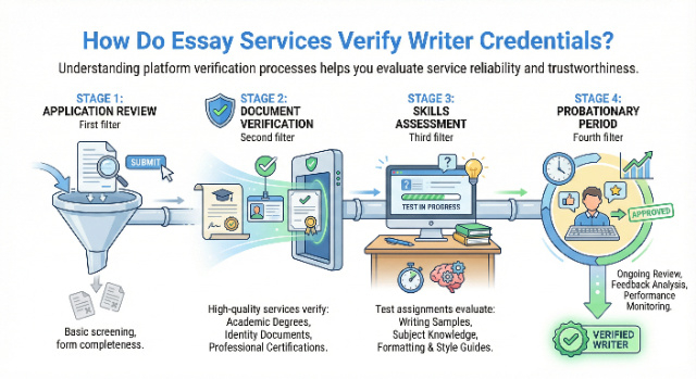 - Verify platform credibility: Choose professional essay writing services with transparent, rigorous verification processes.
