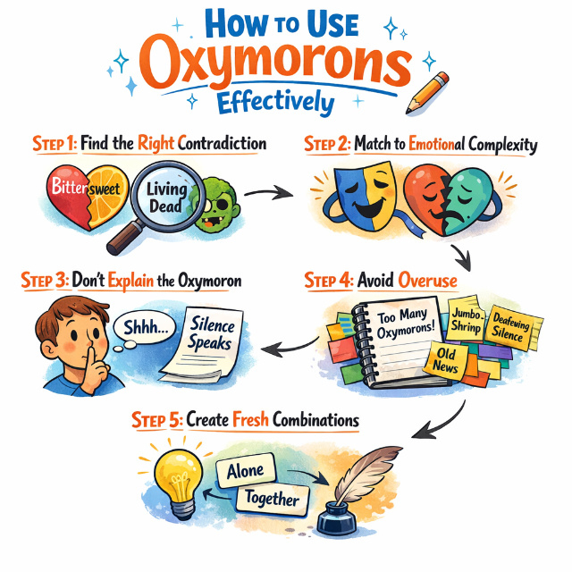 The best oxymorons feel both surprising and inevitable. The contradiction makes perfect sense once you hear it. "Bittersweet" instantly communicates what a paragraph couldn't capture.