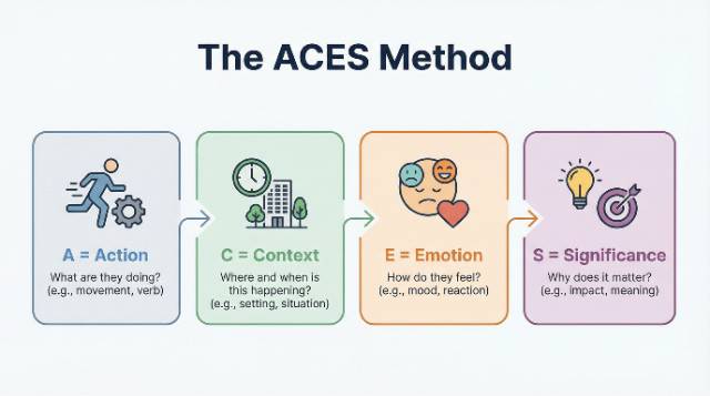 A = Action (What’s Happening) Start with what’s happening in the moment. Set the scene. Example: I stood at the edge of the diving board, toes curled over the rough surface. C = Context (Sensory Details) Add sensory details. What did you see, hear, smell, or feel? Example: Below me, the water looked impossibly far away. The chlorine smell mixed with sunscreen. Kids’ voices echoed off the pool walls. E = Emotion (Internal Experience) Show your internal thoughts and feelings. Example: My heart hammered. Everyone was watching. I couldn’t back down now, but I also couldn’t make my feet move forward. S = Significance (Why This Matters) Connect the moment to your larger story or thesis. Example: This was the moment I’d learn whether I could push through fear or let it control me. |