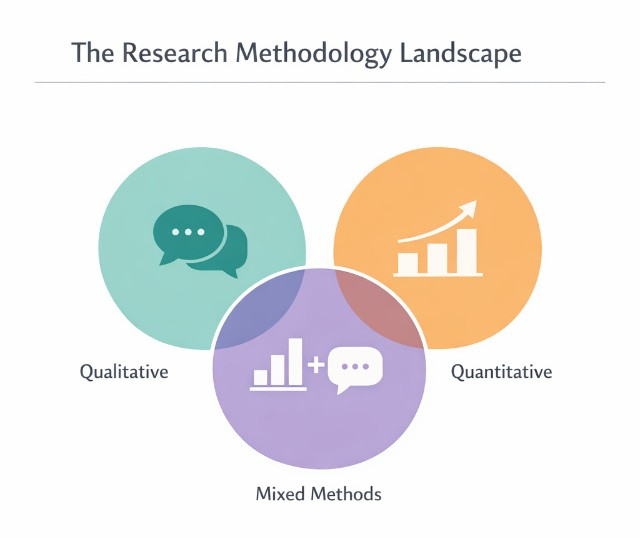 All research methods fall into three main categories: qualitative, quantitative, and mixed methods. Understanding these is essential before choosing your specific types of research methodology.