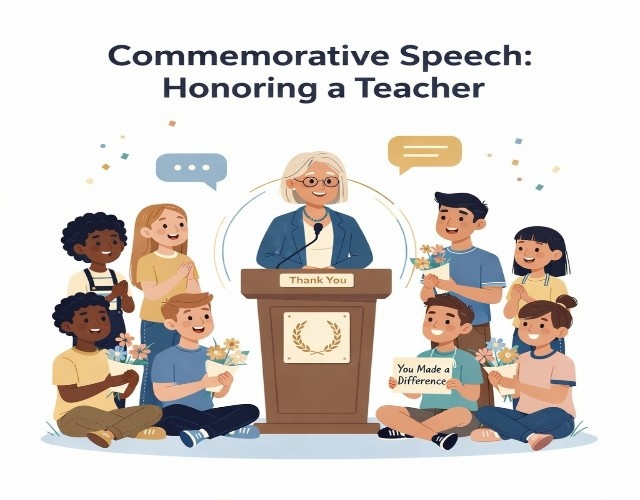 A commemorative speech example shows how speakers honor people, places, or events, learn more in our commemorative speech guide.