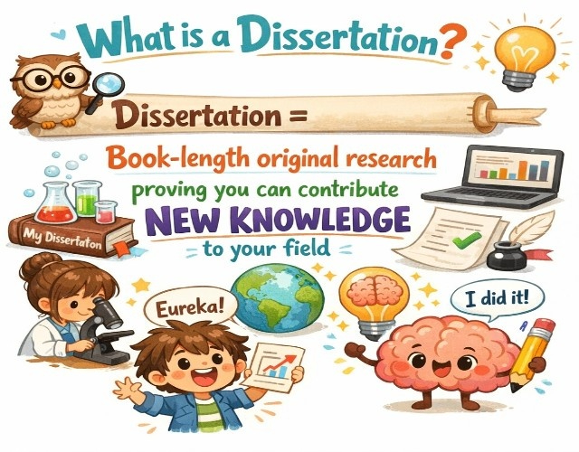 A dissertation is an extensive original research project required for earning a doctoral degree (PhD or equivalent), demonstrating your ability to conduct independent research that makes a significant original contribution to your field.